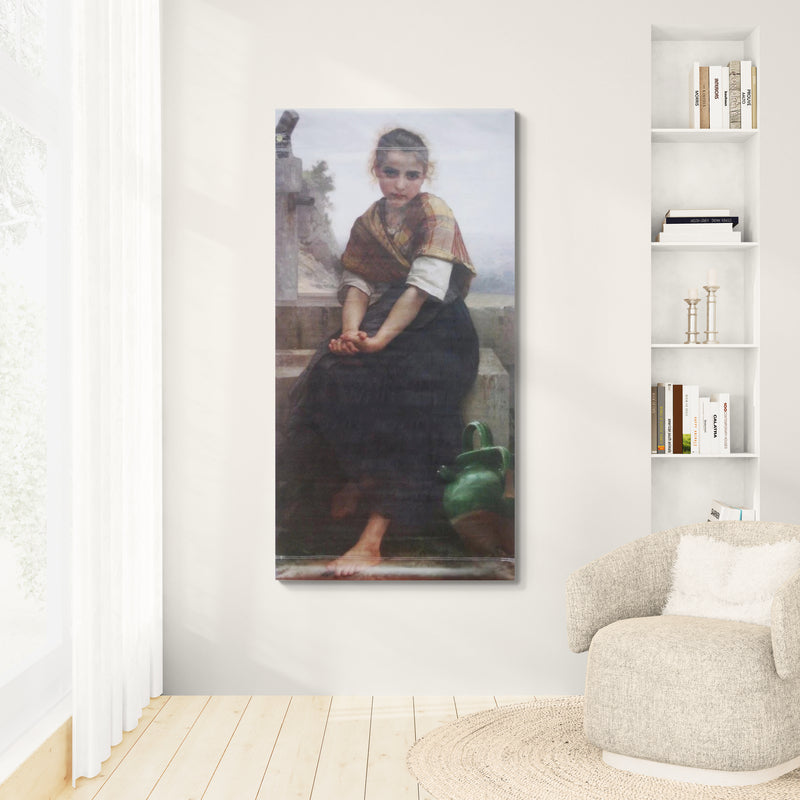 William-Adolphe Bouguereau was a greatly admired French academic painter of the 19th century. His stunningly realistic paintings were sought after by wealthy patrons who eschewed the Impressionists gaining popularity at the time. One of his paintings of a beautiful young woman, "The Broken Pitcher" is seen on 35 banners from the Legion of Honor in San Francisco. The gentle sensibility of Bouguereau shines through in this tender, reflective work.