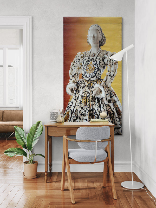 A companion banner sold separately features de Borchgrave’s paper dress of Isabelle de Medici, called ISABELLE DE MÉDICIS, 1540-1557.
